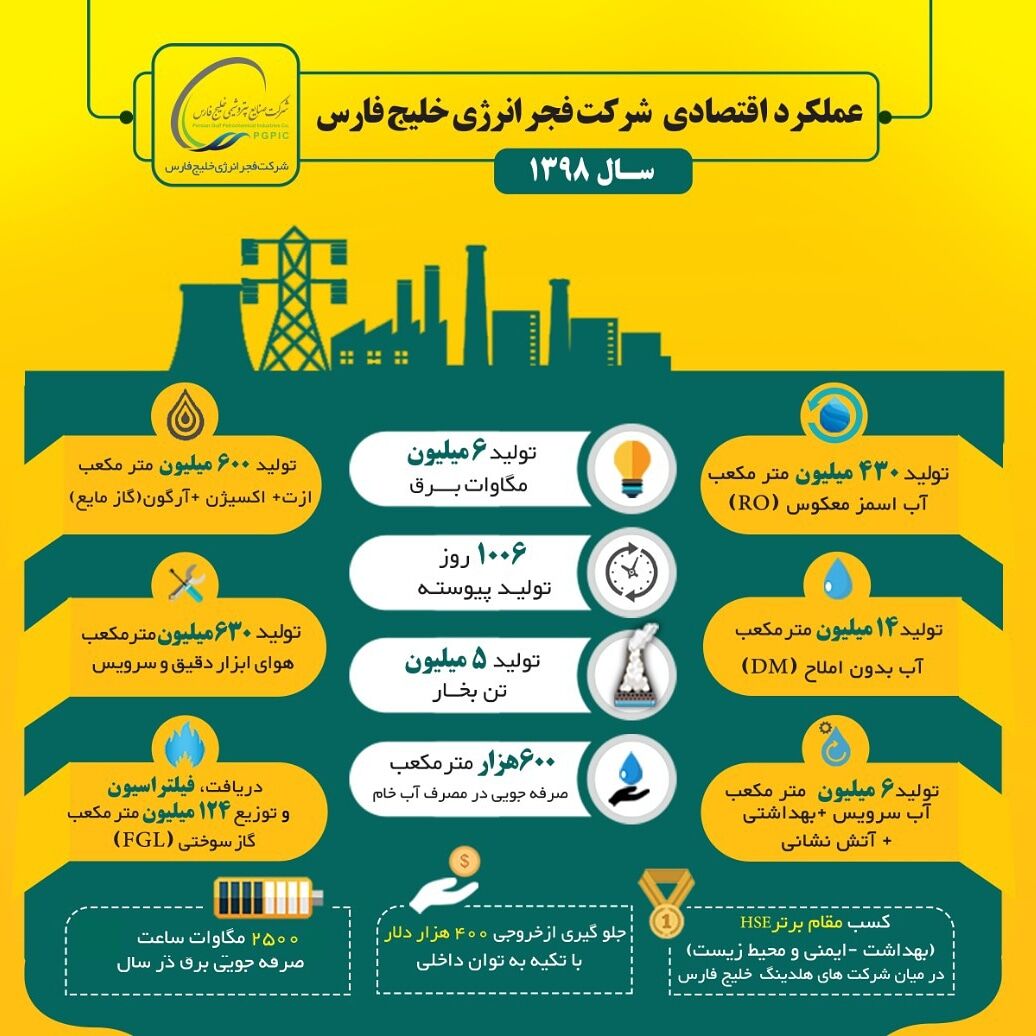 غلامعلی زالخانی با اشاره به اینکه این شرکت وظیفه تأمین انرژی برق و سرویسهای حیاتی صنایع و شرکتهای مستقر در منطقه ویژه اقتصادی پتروشیمی را بهعهده دارد و یکی از مجموعههای مهم و راهبردی منطقه به شمار میرود، افزود: در سال ۹۸ در بخش نیروگاه نزدیک به ۶ میلیون مگاوات ساعت برق و بیش از ۵ میلیون تن بخار، در بخش تفکیک هوا بیش از ۶۰۰ میلیون مترمکعب ازت، اکسیژن و آرگون (مایع و گاز) و بیش از ۶۳۰ میلیون مترمکعب هوای ابزار دقیق و سرویس، در واحد تصفیه آب بیش از ۴۳ میلیون مترمکعب آب اسمز (RO)، ۱۴ میلیون مترمکعب آب خالص(DM) و بیش از ۶ میلیون مترمکعب آب سرویس، بهداشتی و آتشنشانی تولید و به شرکتهای منطقه ارسال شده و در عین حال دریافت، فیلتراسیون و توزیع ۱۲۴ میلیون استاندارد متر گاز سوختی (FGL) را انجام داده است.