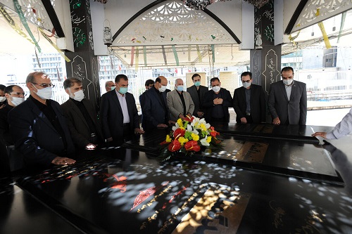 کارکنان با حضور در مزار شهدای گمنام ضمن گرامی داشت خاطره آنان، برای شهدای هشت سال دفاع مقدس و مدافعان حرم دعا و فاتحه قرائت کردند.