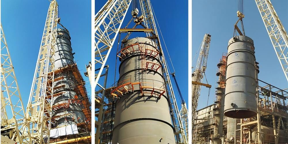 بلندترین برج صنعت پتروشیمی ایران با موفقیت نصب شد