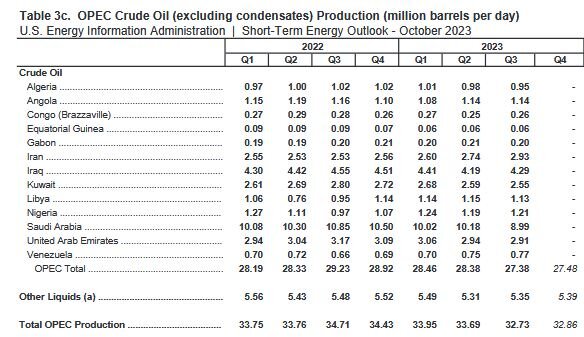 طبق آمار گزارش «دورنمای کوتاه مدت انرژی» اداره اطلاعات انرژی آمریکا، میانگین تولید نفت ایران در سه ماهه سوم سال میلادی جاری، به ۲.۹۳ میلیون بشکه در روز رسیده و کشورمان پس از عربستان سعودی با تولید ۸.۹۹ میلیون بشکه در روز و عراق با تولید ۴.۲۹ میلیون بشکه در روز، در رتبه سوم بزرگترین تولیدکننده اوپک قرار گرفته است و امارات عربی متحده با تولید ۲.۹۱ میلیون بشکه در روز در رتبه چهارم و کویت با تولید ۲.۵۵ میلیون بشکه در روز پس از ایران، ایستادهاند.