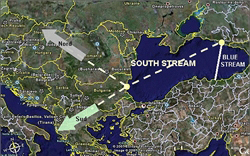 خط لوله ساوث استریم قرار است حدود ٦٣ میلیارد مترمکعب گاز روسیه را از مسیر دریای سیاه، بلغارستان، صربستان، مجارستان و اسلوونی به ایتالیا صادر کند.