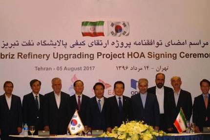توافقنامه همکاری میان ایران و کره جنوبی برای تأمین فاینانس و اجرای پروژه ارتقای فناوری و کیفیت فرآوردههای پالایشگاه تبریز میان شرکت پالایش نفت تبریز و کنسرسیومی متشکل از شرکتهای مهندسی و ساختمان اس کی (SKEC) از کره جنوبی و طراحی و ساختمان نفت (ODCC) از ایران، روز شنبه ( ۱۴ مردادماه) در هتل اسپیناس پالاس تهران امضا شد.