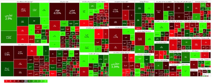 بیشترین تاثیر مثبت را نمادهای فولاد مبارکه اصفهان (فولاد) با یکهزار و ۸۴۲ واحد، صنایع پتروشیمی خلیج فارس (فارس) با یکهزار و ۲۶۸ واحد، بانک ملت (وبملت) با یکهزار و ۲۰۹ واحد، پالایش نفت اصفهان (شپنا) با ۸۴۹ واحد و معدنی و صنعتی گل گهر (کگل) با ۵۷۰ واحد داشتند.